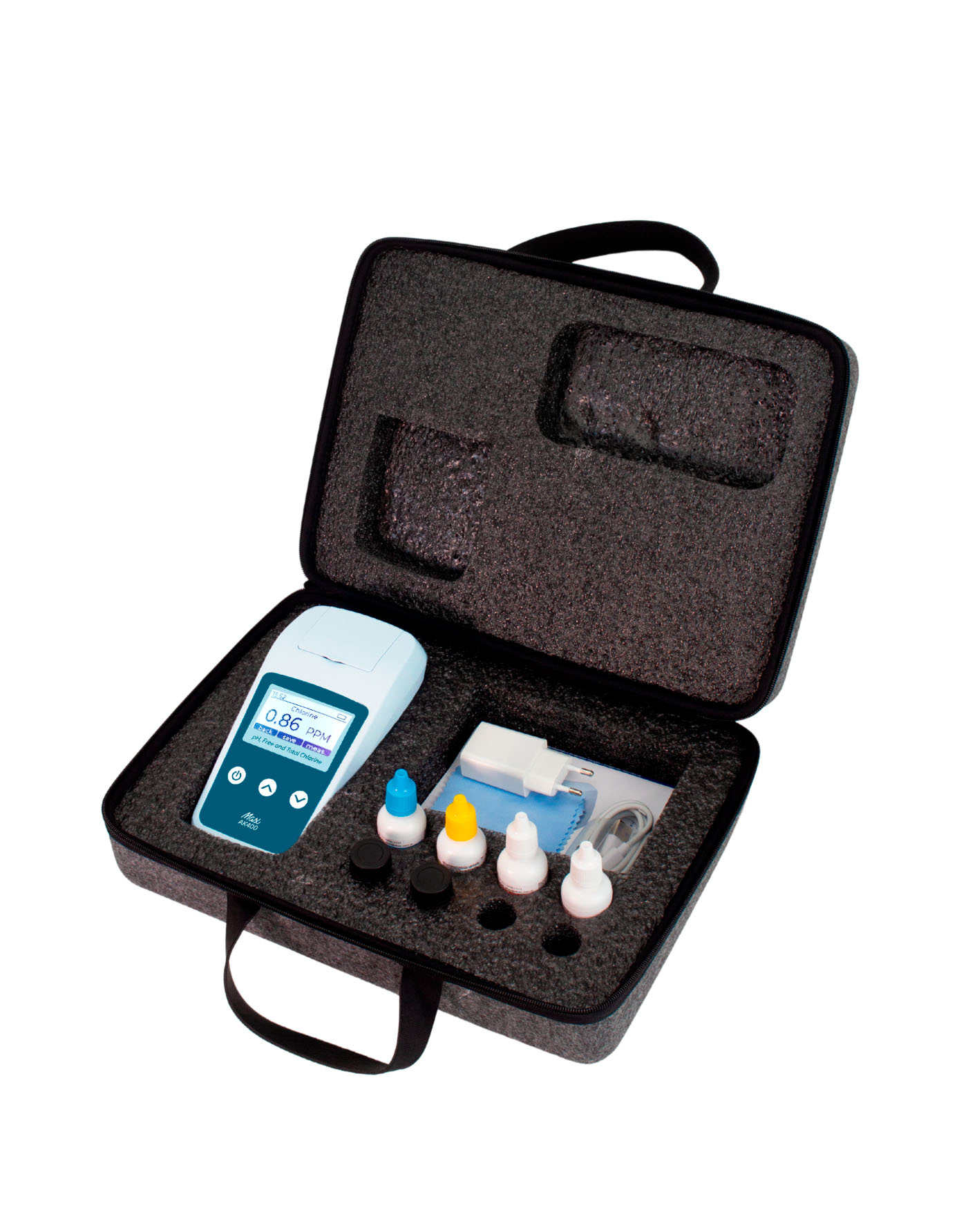 El fotómetro AK400 MAX es la herramienta ideal para análisis rápidos y precisos de pH, cloro libre y total en agua. Este instrumento se puede utilizar en una variedad de aplicaciones, desde piscinas, agua potable, calderas, torres de enfriamiento, alimentos, bebidas hasta medio ambiente.
