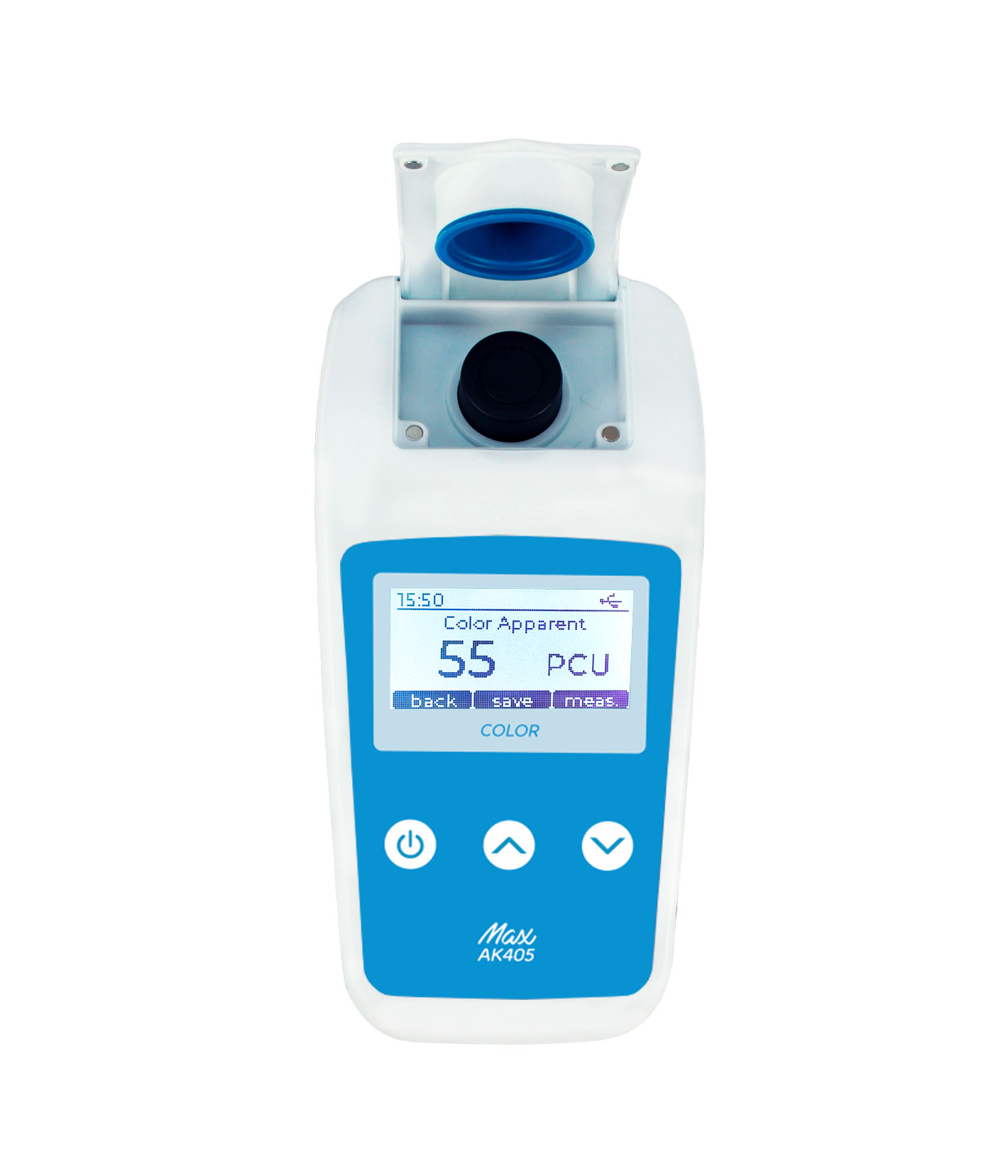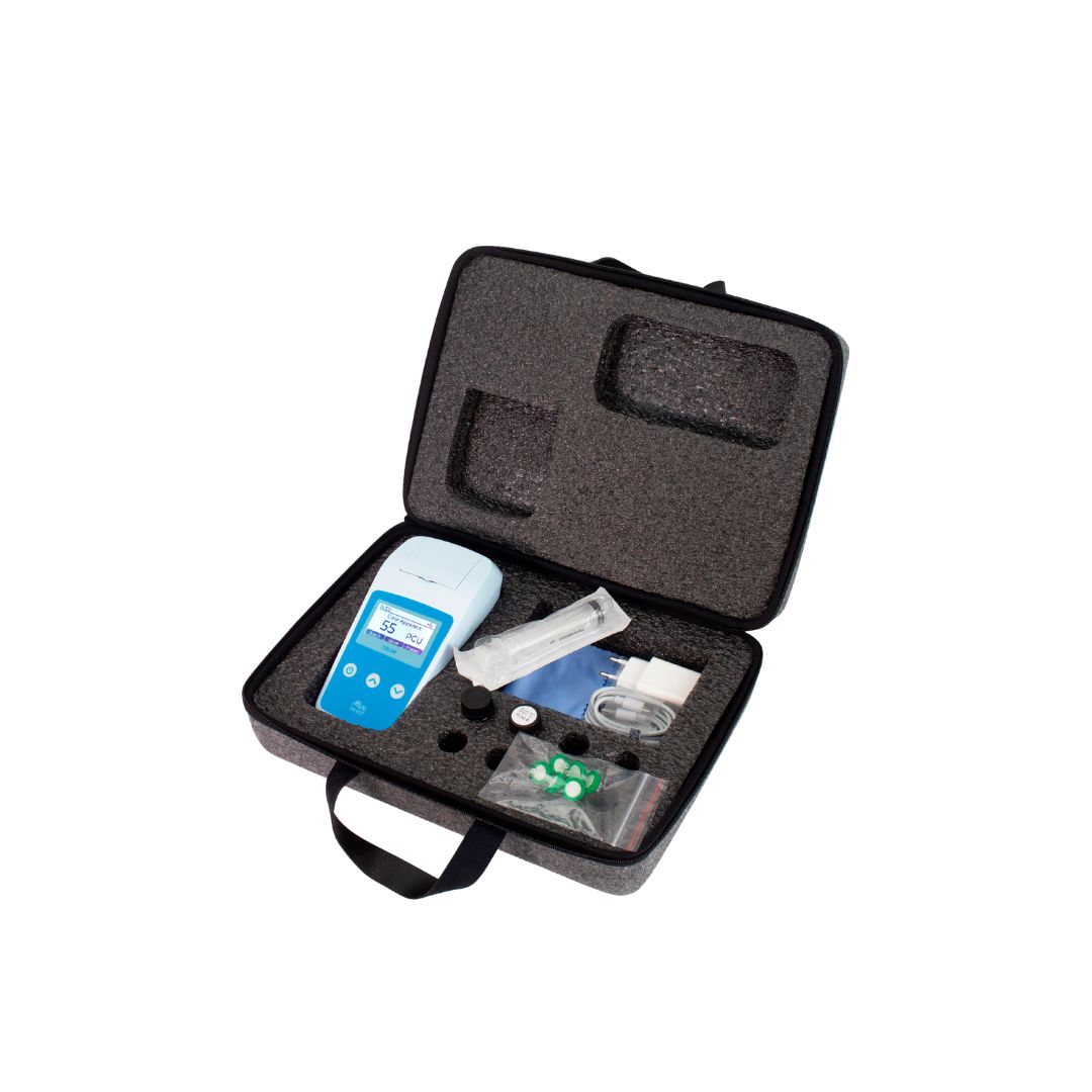 El fotómetro de color AK405 MAX realiza mediciones digitales utilizando el método Platino-Cobalto, considerado como el método estándar para medir el color en agua potable y aguas naturales. Este parámetro se utiliza para evaluar la potabilidad del agua. El fotómetro de color AK405 realiza análisis de color verdadero y aparente en el rango de 0 a 500 PCU, en el que el color verdadero es el resultado de medir agua filtrada, es decir, sin sólidos en suspensión, mientras que el color aparente se obtiene sin filtrar la muestra.