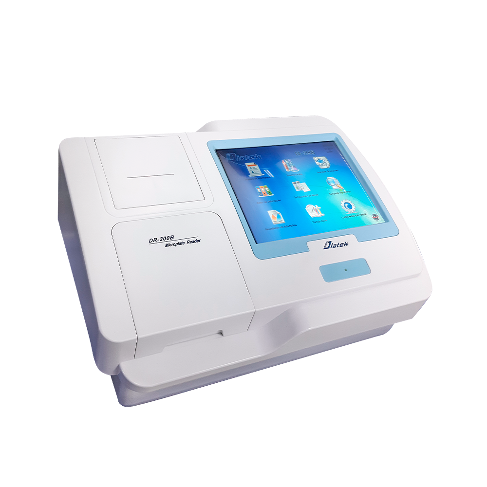 El Lector de ELISA DIATEK DR-200B es un equipo de alta precisión para la detección de anticuerpos, antígenos y otras sustancias mediante ensayos inmunoenzimáticos. Su fotómetro de 8 canales permite la lectura simultánea de microplacas, mejorando la eficiencia y reduciendo el tiempo de análisis. Cuenta con una pantalla táctil LCD de 10.4” de alta resolución y una interfaz intuitiva para una operación sencilla. Su sistema de escaneo con fibra óptica y auto centrado de placas garantiza mediciones exactas. Puede realizar lecturas de longitud de onda simple o doble, con evaluación cualitativa y cuantitativa integrada. Además, permite realizar hasta 12 pruebas diferentes en una sola placa. Su memoria interna almacena hasta 200,000 pruebas y 500 programas, con posibilidad de conexión a PC y software especializado para análisis de datos. Es una herramienta esencial en laboratorios de diagnóstico clínico e investigación biomédica.