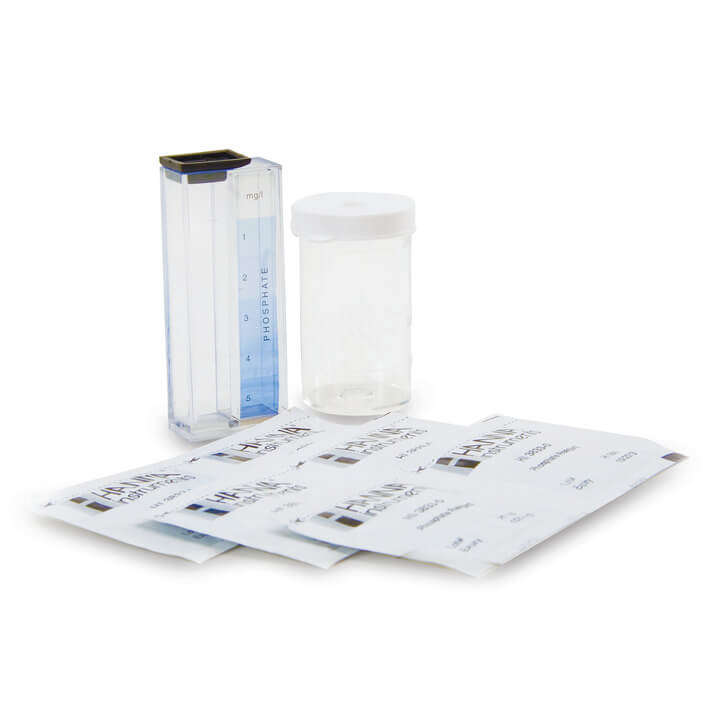 El HI3833 es un kit químico de pruebas colorimétricas que determina la concentración de fosfato en muestras dentro de un intervalo de 0 a 5 mg/L (ppm). El HI3833 se suministra con todos los reactivos y accesorios necesarios para realizar el análisis. El kit de prueba contiene suficientes reactivos para realizar aproximadamente 50 pruebas.