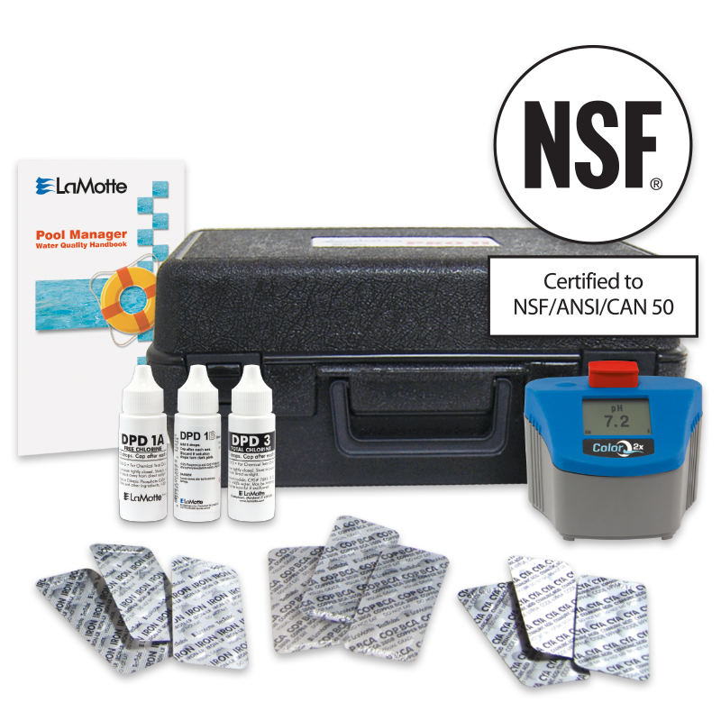 El fotómetro portátil definitivo para piscinas y spas en el lugar. Mide nueve pruebas de piscina y spa directamente en una pantalla digital. Los factores de prueba incluyen cloro libre, cloro total, bromo, pH, alcalinidad, dureza calciccia, ácido cianurico, hierro y cobre.