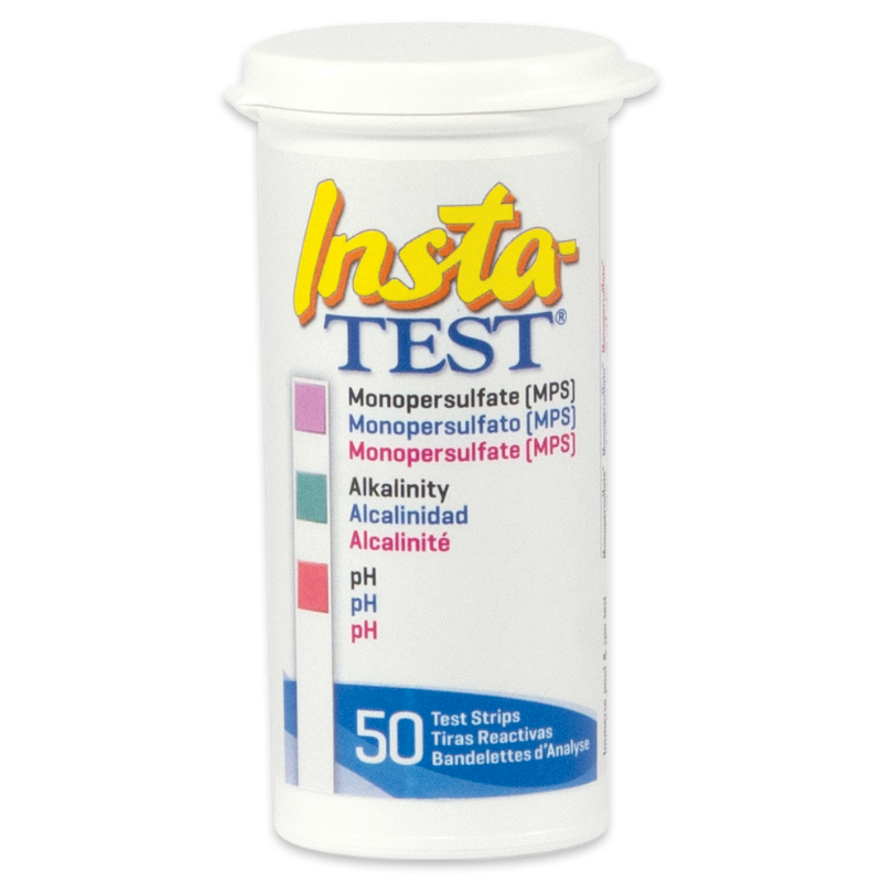 Mide MPS en niveles bajos, aceptables y altos de MPS, alcalinidad 0, 40, 80, 120, 180, 240 ppm, y pH 6,2, 6,8, 7,2, 7,8, 8,4, 9,0, con resultados instantáneos. Las tiras vienen envasadas a 50 por botella.