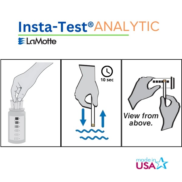 Las tiras reactivas Insta-Test® de LaMotte son un aliado indispensable ya que están diseñadas para proporcionar un análisis rápido y preciso en cada uso. Las tiras 2984 de peróxido (choque de biguanida) mide los niveles de peróxido. Se presentan en un vial de plástico que cuenta con un revestimiento desecante moldeado que protege las tiras de la humedad y la luz ultravioleta que incluye una escala de colores claramente impresa, lo que facilita la interpretación de los resultados.