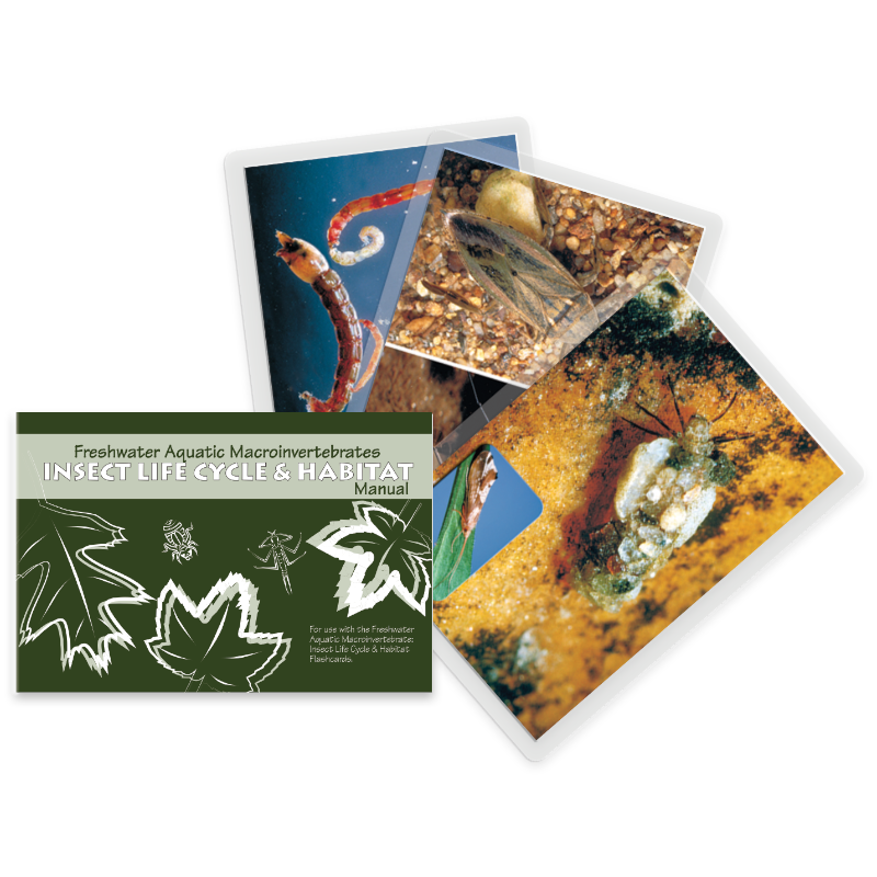 Ayuda a los niños a comprender el ciclo vital y los hábitats de los macroinvertebrados acuáticos de agua dulce con este conjunto de tarjetas y manual.