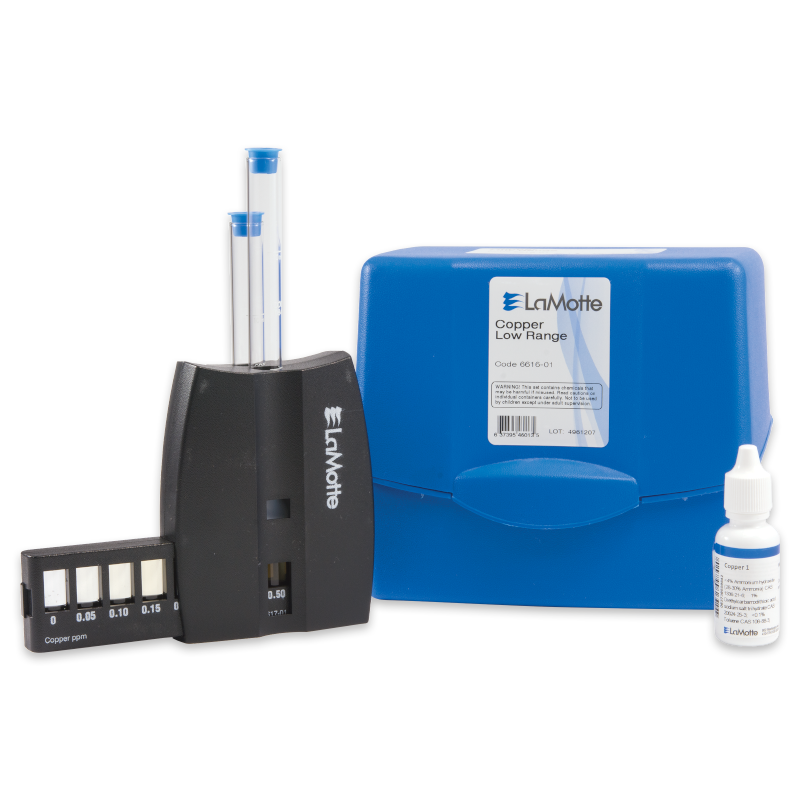 Este kit prueba cobre usando el comparador LRC. El rango y la sensibilidad son 0, 0,05, 0,10, 0,15, 0,20, 0,30, 0,40, 0,50 ppm Cu.