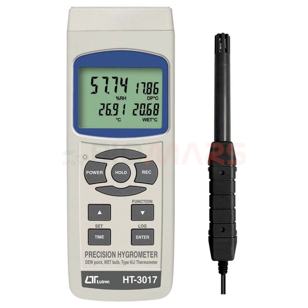 - Sensor de humedad de precisión para humedad (% HR), temperatura de bulbo húmedo, temperatura de punto de rocío, valor de temperatura al mismo tiempo y muestra los 4 tipos de valores de lectura en la misma pantalla LCD, lectura fácil